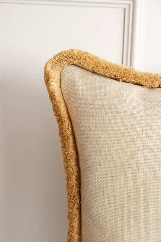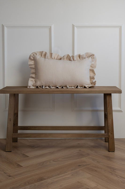 Buttercream Linen Lumbar Cushion - Stitched Boarder