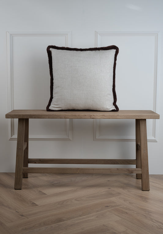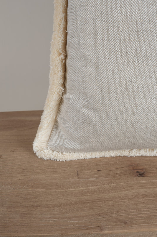 Herringbone Tweed Nude Cushion - Stitched Boarder