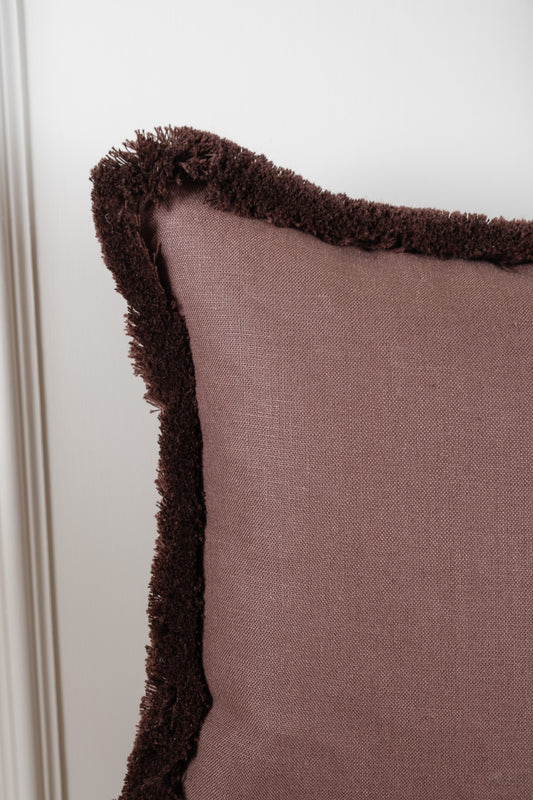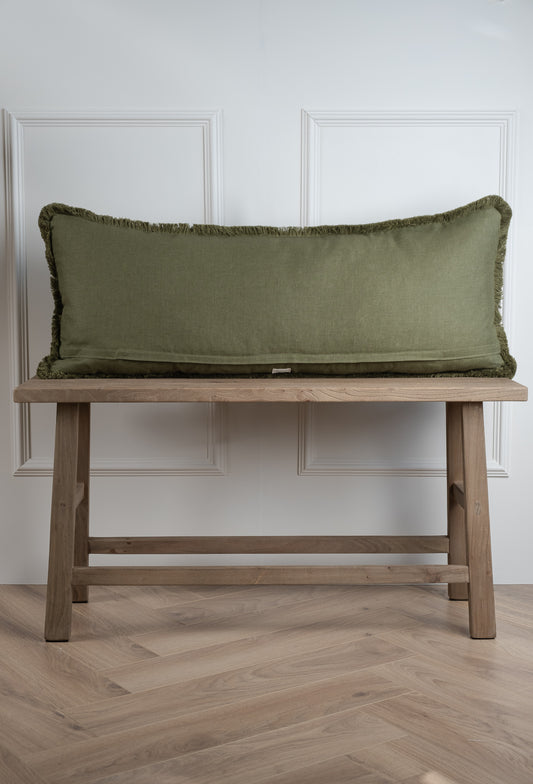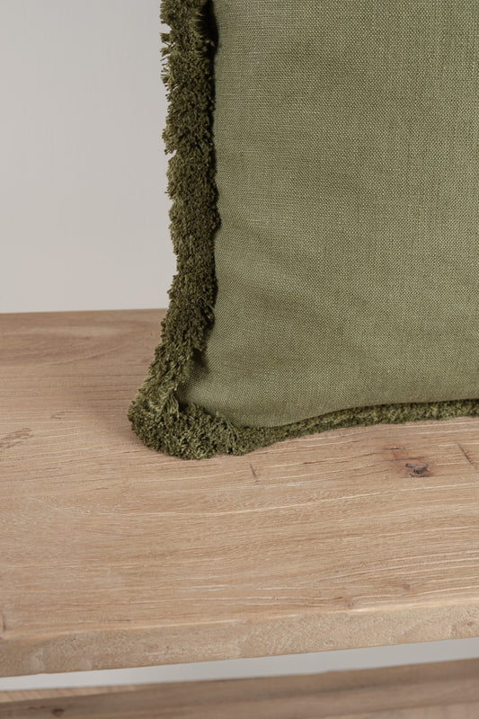 Shadowed Linen Stripe Cushion - Deep Olive Fringe