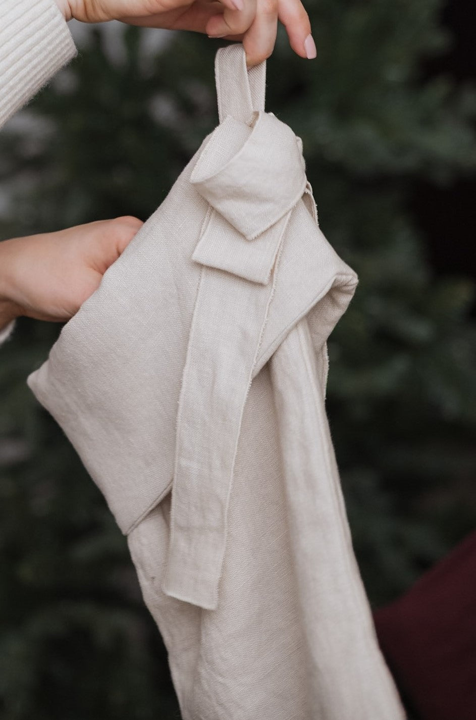 A timeless heirloom item for your Christmas mantle year after year, a piece that will age beautifully with time and use. Made from a laundered finish linen featuring a relaxed bow detailing. A perfect gift for a loved one or a heirloom item for your home.